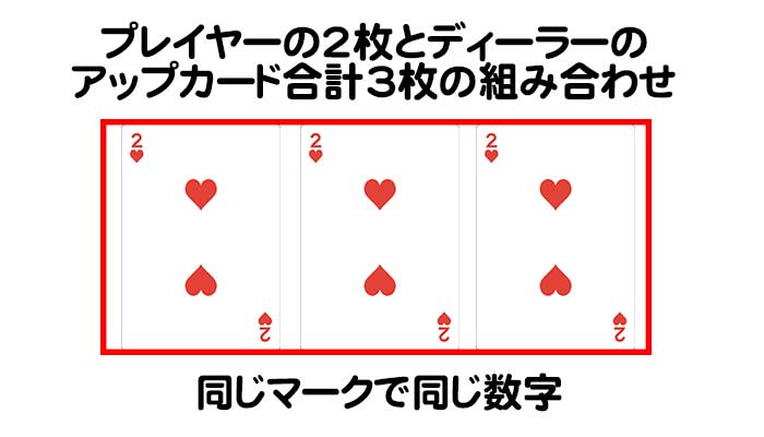 最初に配られたプレイヤーの2枚のカードとディーラーのアップカード(表向きに置かれているカード)が、決められた組み合わせになると予想して賭ける。