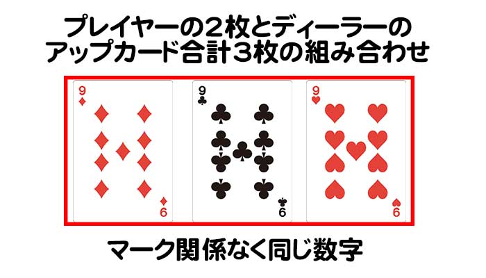 「♦6」「♣6」というようにマーク(絵柄)は関係なく同じ数字だった場合、配当が8倍