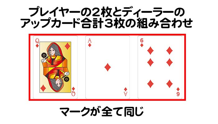 「♠A」「♠7」「♠K」このようにマーク(絵柄)が同じだった場合、配当は5倍