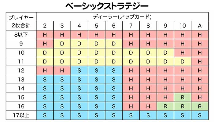 ブラックジャックの必勝法としてベーシックストラテジーというものがあります。