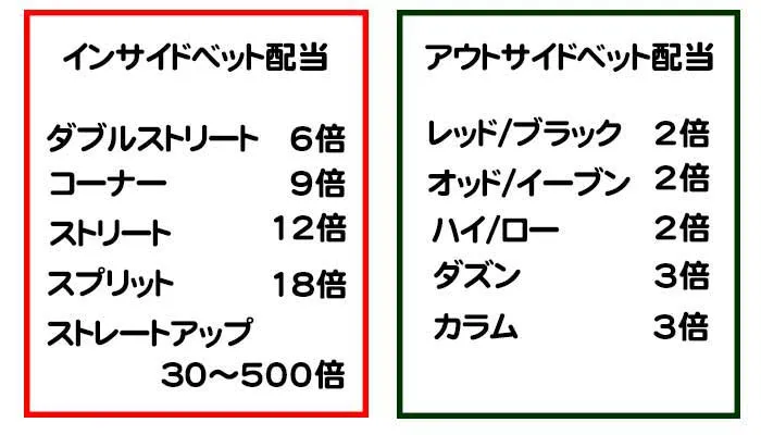 球が落ちた数字のグループと同じであれば配当が獲得できます。