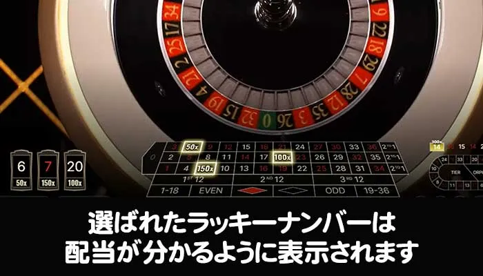 ラッキーナンバーが決まると画面上ではその数字に対しての配当が分かるように表示されます。