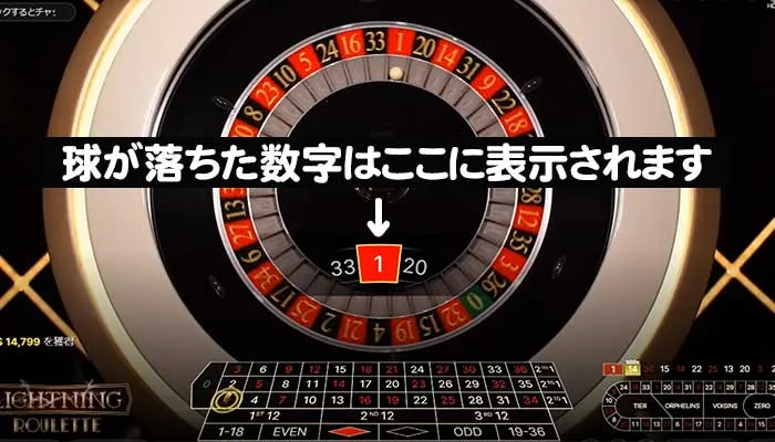 通常のルーレットと違う点はプレイヤーがベットした(賭けた)後にライトニングラウンドといってランダムに数字が1~5個選ばれ、その数字ごとに配当が変動します。