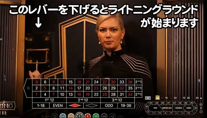 ベット時間が終了するとゲームを進行する人が後ろにあるレバーを下におろしライトニングラウンドが始まります。