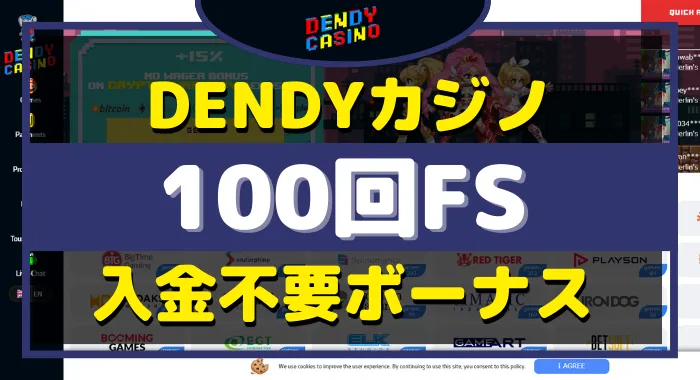 DENDYカジノでは、登録するだけで【100回FS】の入金不要ボーナスがもらえます。