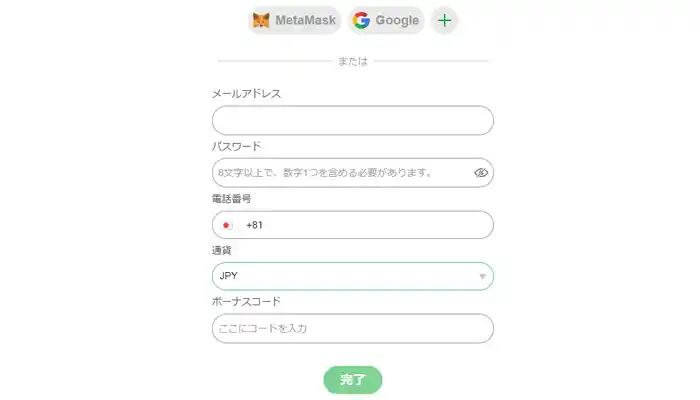 登録時にボーナスコード「45CX」を入力しないとボーナスが貰えないのでご注意下さい。
