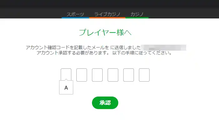 登録時のメールアドレスに認証コードが届くので認証作業を行います。