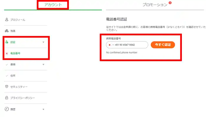 入金不要ボーナスは電話番号認証と本人確認書類の提出が必要になります。