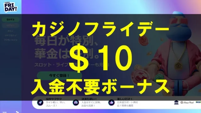 $45の入金不要ボーナスは高額であることは間違いありません。しかし上には上がいてエルドカジノの5000円や遊雅堂の300回FS($60相当)等があります。
