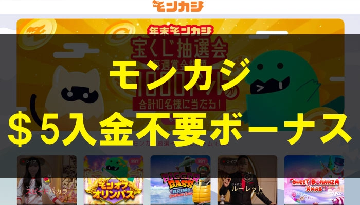 モンカジ入金不要ボーナス【$5】の出金条件や登録方法を紹介。入金不要ボーナス自体は$5と少ないのですが、賭け条件が無いので気軽に楽しむ事が出来ます。