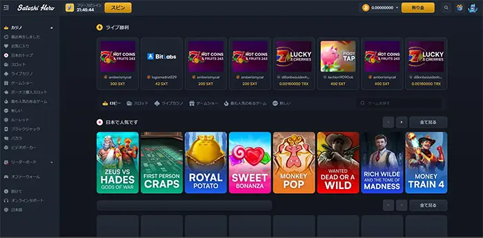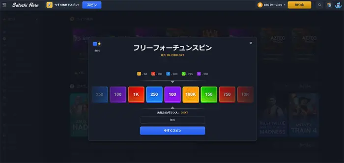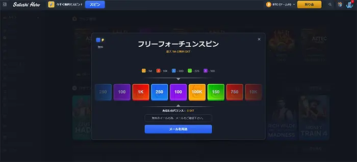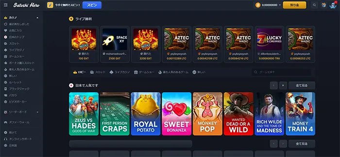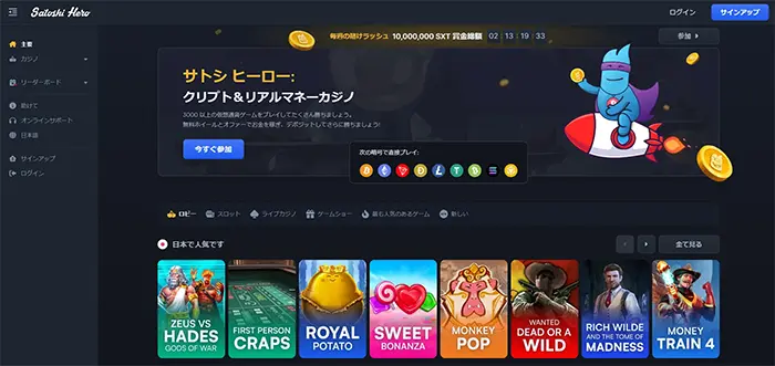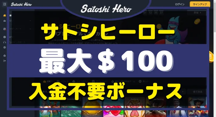 まだ新しいオンラインカジノのサトシヒーローは仮想通貨とリアルマネーの両方で遊べ、最大$100の入金不要ボーナスは簡単に貰えるので興味がある方はぜひ利用しましょう。