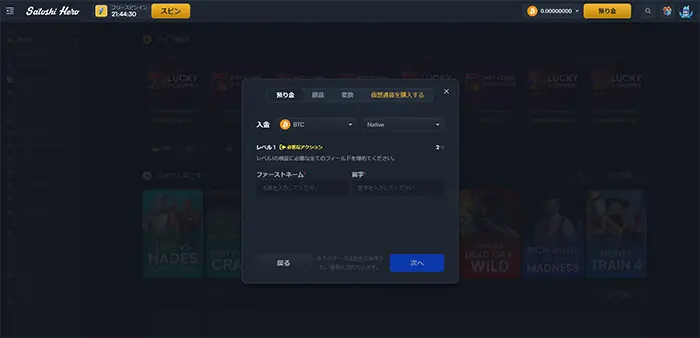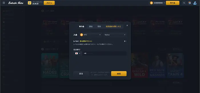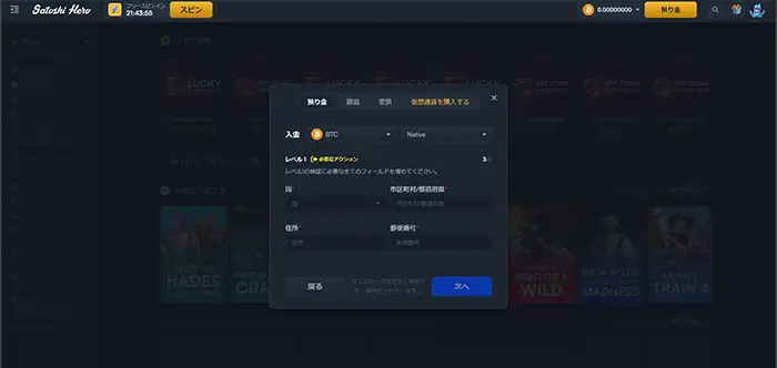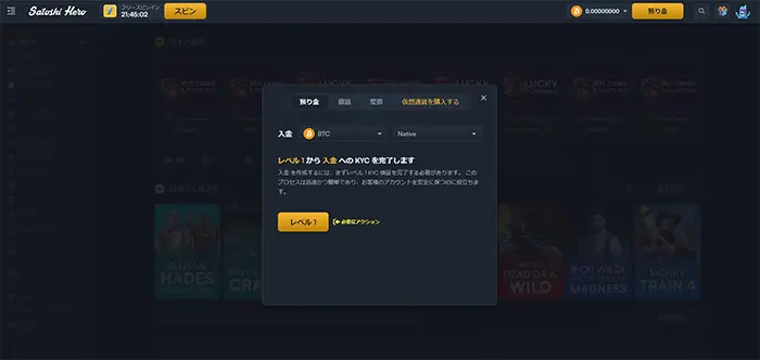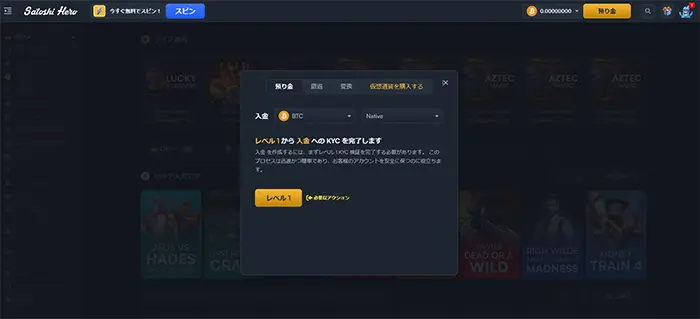 サトシヒーローの入金不要ボーナスを出金するためにはKYCレベル1を完了させる必要があります。