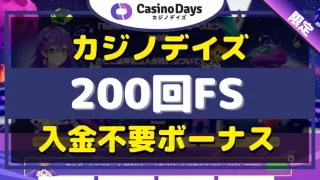 カジノデイズ入金不要ボーナス【限定200回FS】の受け取り方と出金条件を紹介カジノデイズは閉鎖しました。...