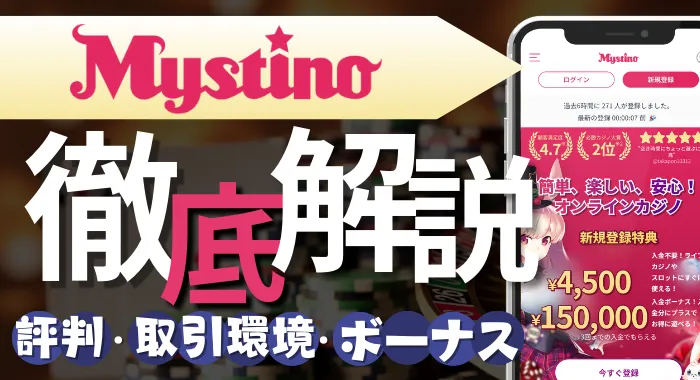 オンラインカジノのミスティーノの偽りのない良い評判と悪い評判を紹介しています。削除覚悟内容も多々ありますので消される前にご確認下さい。【削除覚悟】ミスティーノカジノの全貌が明らかになります。